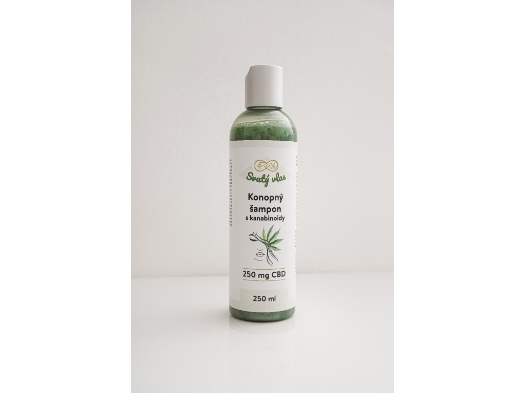 Výživný konopný šampon s CBD, dalšími kanabinoidy a směsí esenciálních olejů včetně konopného.
