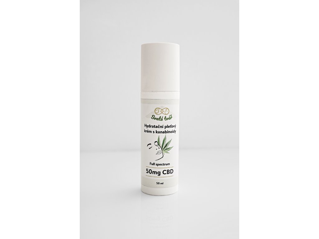 Hydratační krém na obličej s CBD i dalšími kanabinoidy a směsí esenciálních olejů včetně konopného.